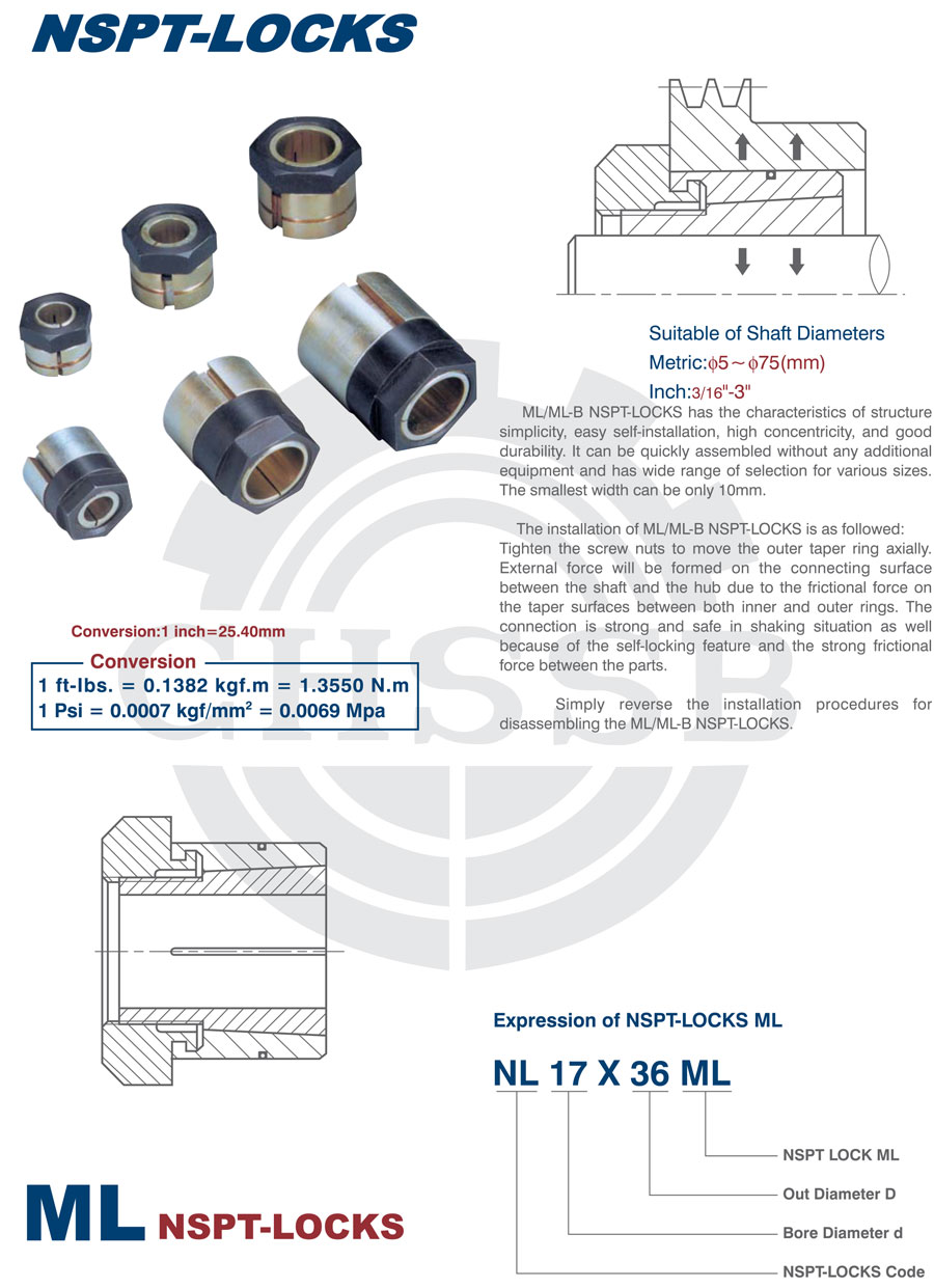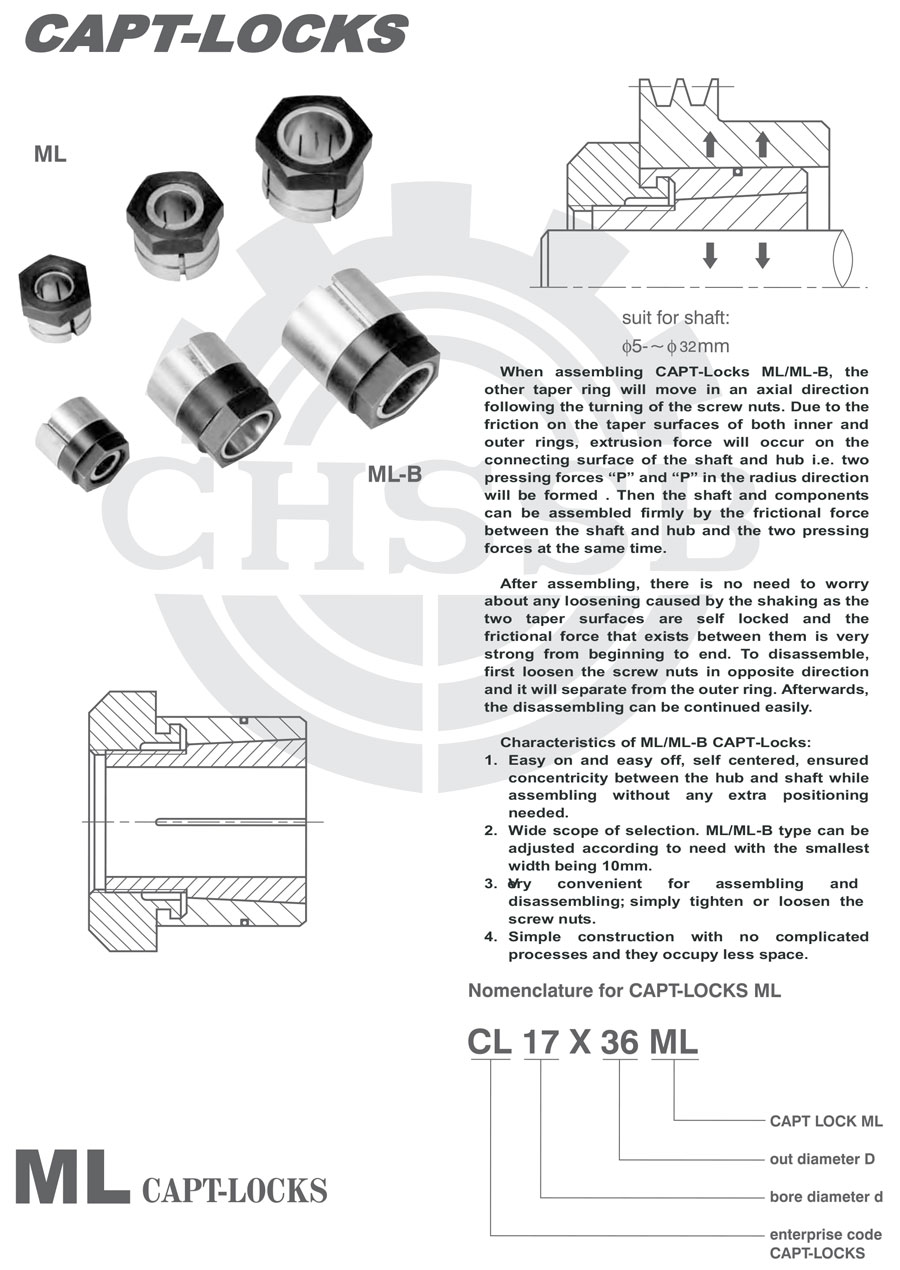 母,使螺母松開,內(nèi)外環(huán)即可分離,拆卸很容易完成。ML/ML-B型脹緊聯(lián)結(jié)套的使用特征:裝卸方便、自動定心、