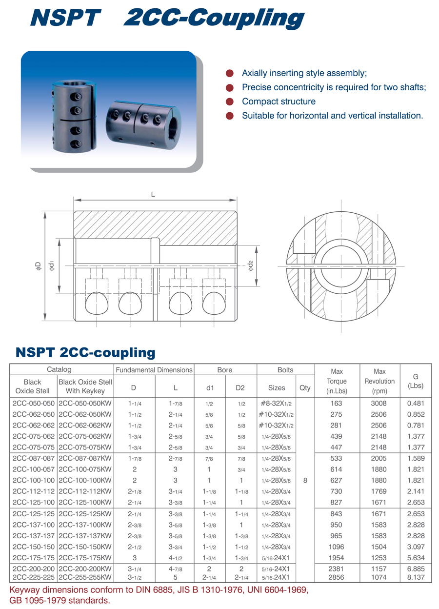 產品范圍: 美標:(2CC) 英制尺寸產品(適用于美標市場) 2CC聯軸器